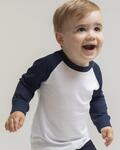 Long sleeved baseball style t-shirt with contrast sleeves and neck band, Twin needle stitching at hem and cuffs