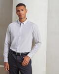 Button and tab for roll sleeve option, Single button cuff and sleeve guard, Hidden down button collar, Easycare fabric, Worldwide Responsible Accredited Production (WRAP) certified production
